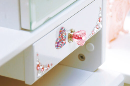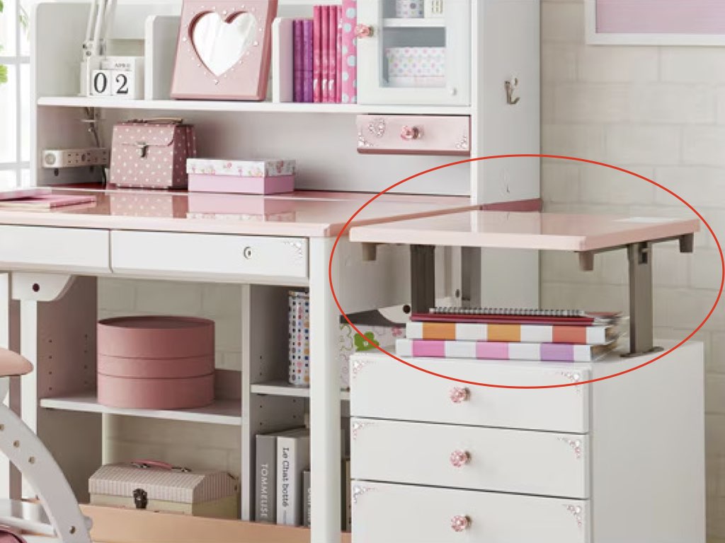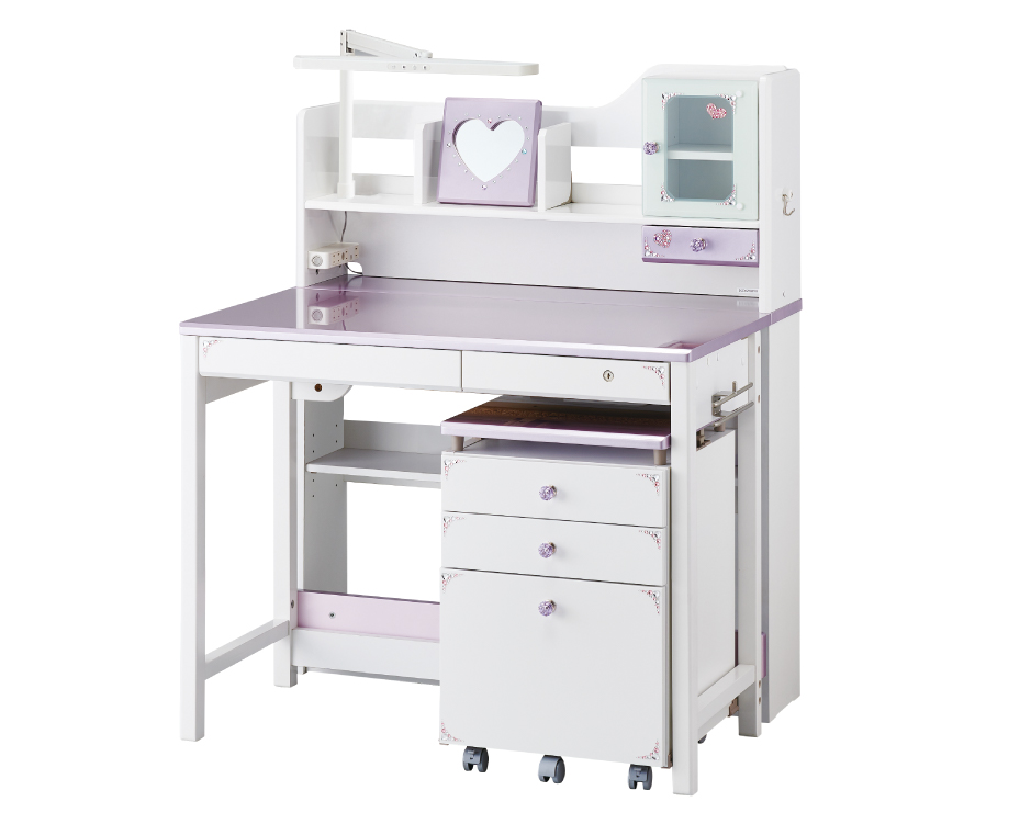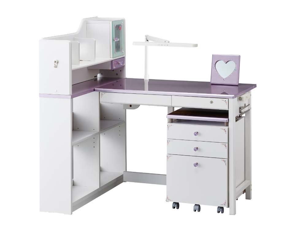「デコプリ」で叶える、夢見るわたしのプリンセスデスク。毎日座るのが楽しみになる、女の子の「大好き」が詰まったデスク。それがデコプリです。キラキラ輝くデコレーションシールや、上品なラメ入りホワイトの天板が、お部屋をまるで秘密のドレッサー空間へ変身させます。おしゃれなだけでなく、機能性も抜群。自分好みにカスタマイズできる天板や、使いやすい整理棚で、お勉強も趣味の時間も効率アップ!子供っぽすぎず、大人っぽすぎない、絶妙な可愛らしさが、成長に合わせて長く寄り添います。デコプリデスクで、あなただけの特別なお城の物語を始めませんか?可愛いだけじゃない、機能派デスクで夢を叶える力も育みます。